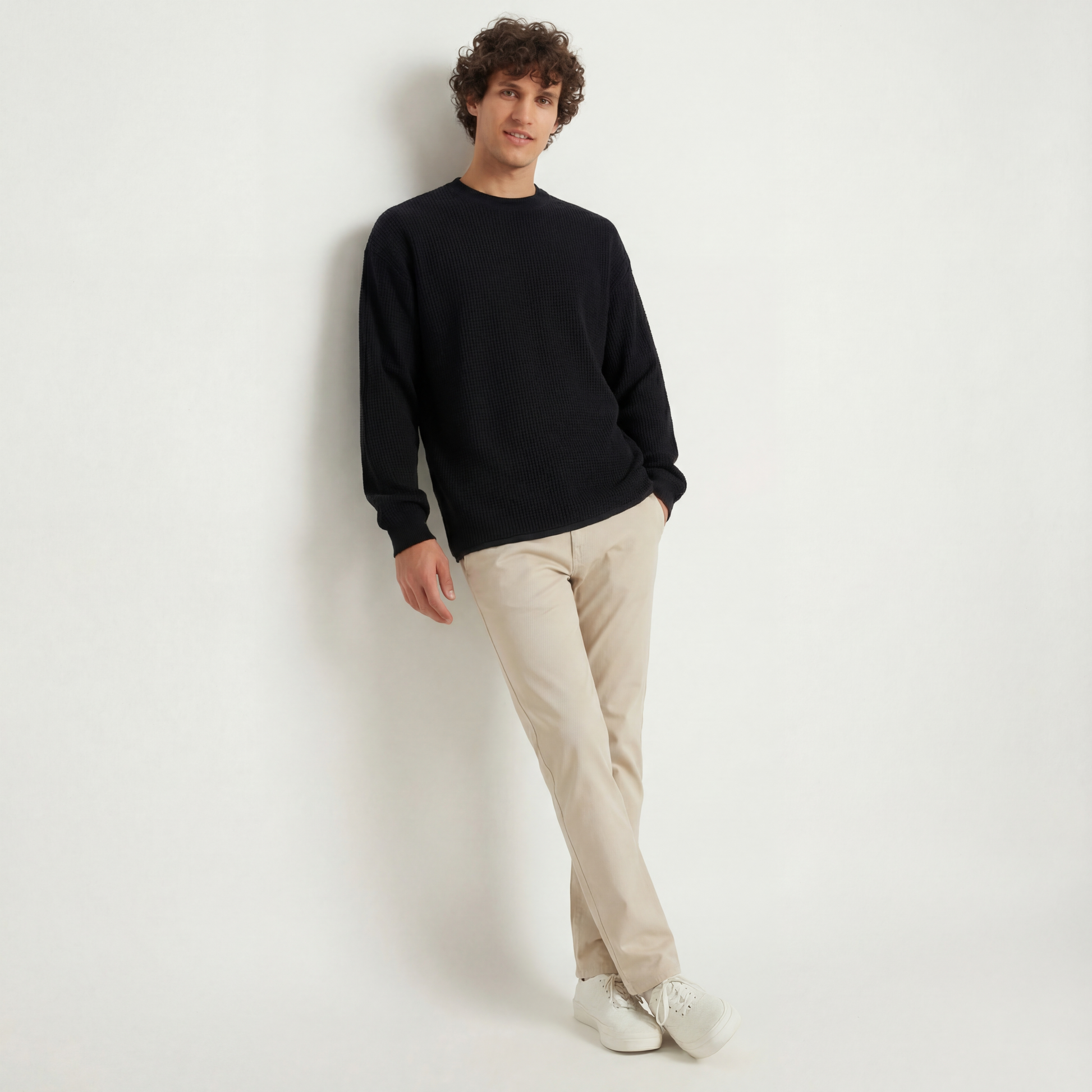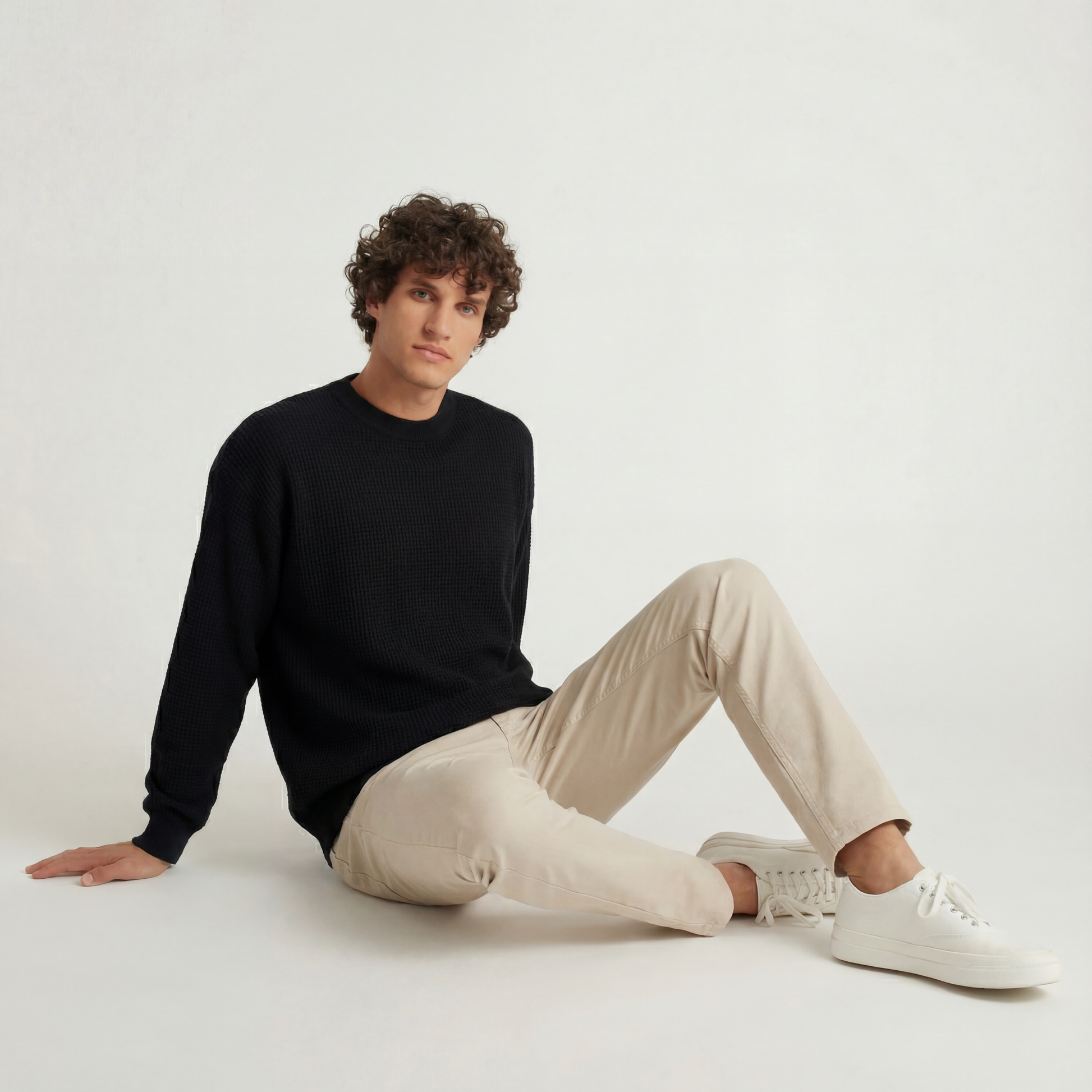 Minimal, versatile, and effortlessly stylish. The Voyager is your go-to knit for every journey. Crafted from soft, breathable 100% cotton with a subtle textured finish, it delivers all-day comfort while keeping a refined silhouette. Designed with a classic crew neckline, ribbed cuffs, and a relaxed fit, this piece pairs seamlessly with anything from tailored trousers to casual denim.